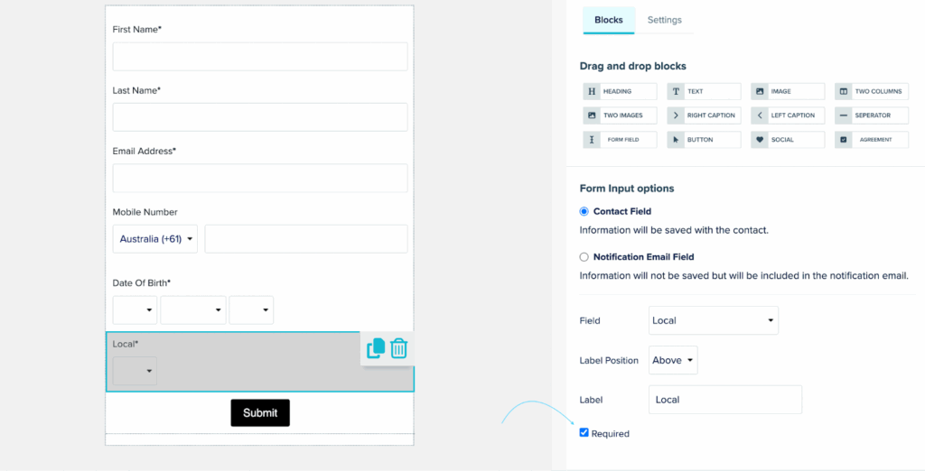 Note: Add the ‘Local’ field into your ‘Update Details’ Form to capture this information alongside other important customer details.